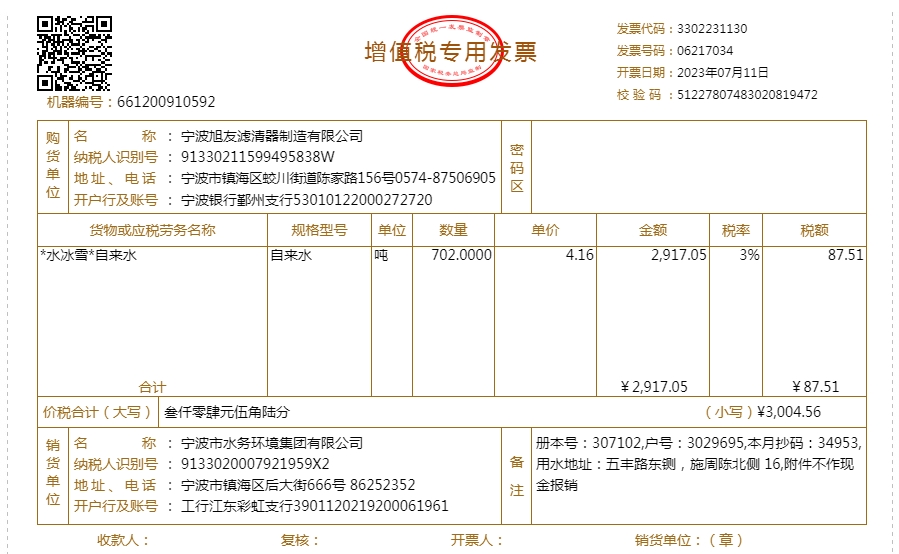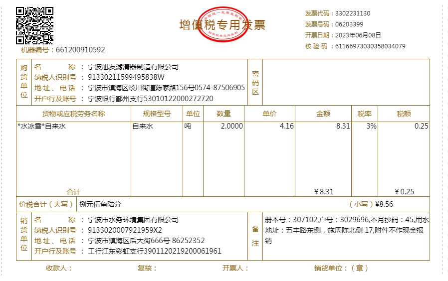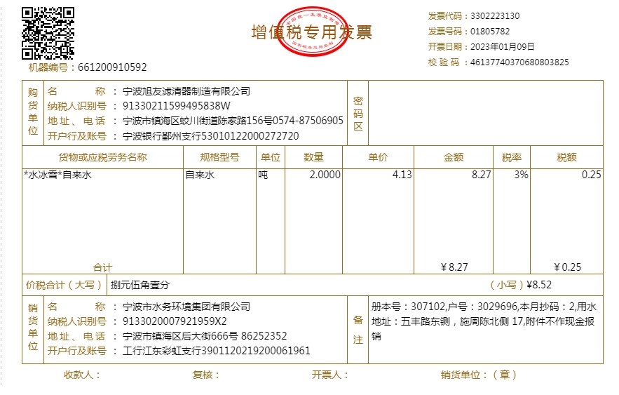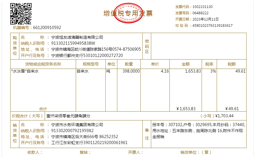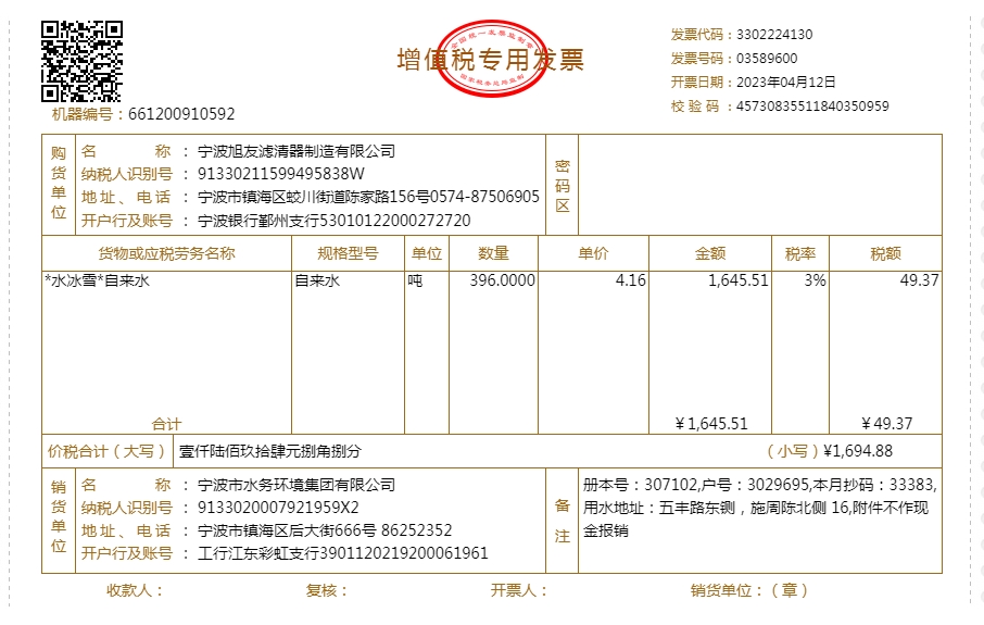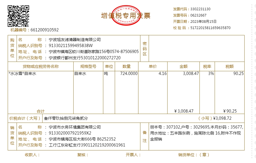 - 2023年水费发票